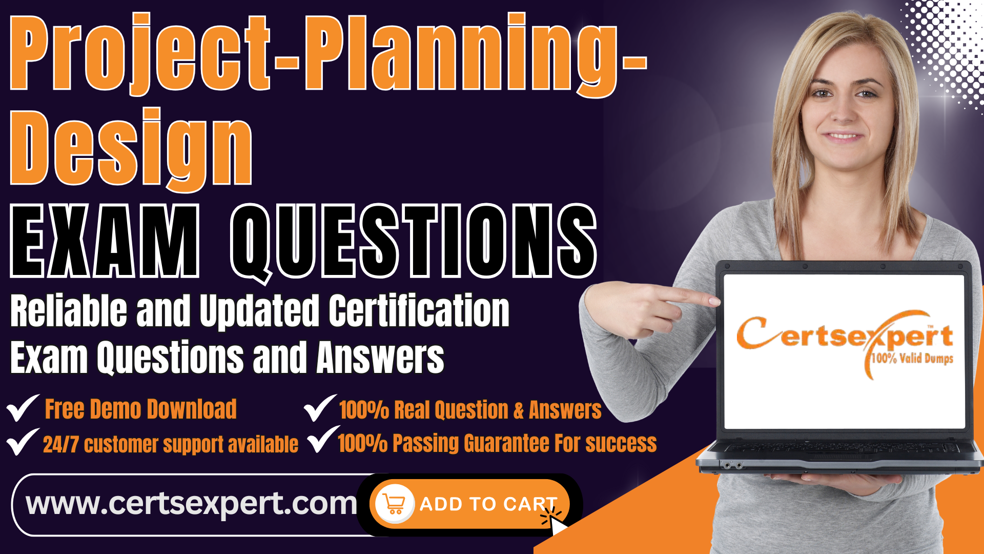 Achieving the Project Planning Design certification can feel challenging, but CertsExpert provides exam questions that make preparation clear, simple, and stress-free. These questions are carefully organized to cover all key topics, helping candidates focus on what is most important for the exam. By using CertsExpert, you can understand the exam format, strengthen your knowledge, and approach the test with confidence. The structured content saves time and avoids confusion from scattered information, allowing your preparation to be productive and focused. This method not only increases your chances of passing on the first attempt but also enhances practical skills that are valuable in professional life. With CertsExpert, you get a reliable and efficient path to certification success, giving you confidence, reducing stress, and opening doors to better career opportunities and long-term professional growth.
