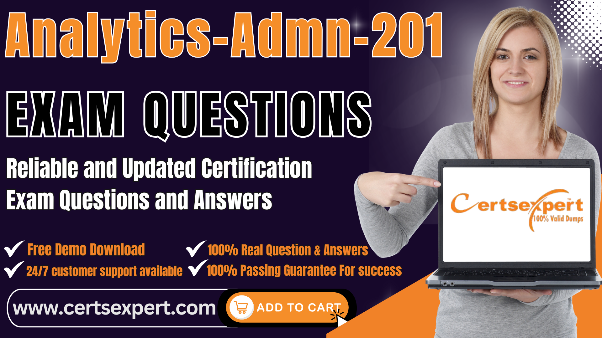 At CertsExpert, we provide candidates with 100% verified Analytics Admn 201 exam dumps, regularly updated to match the latest exam objectives. Our resources are designed to help you: